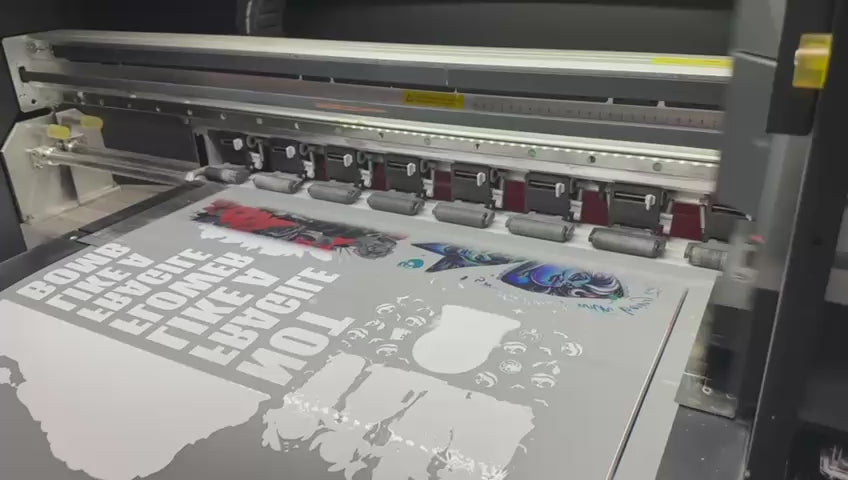 A DTF transfer is a special heat-applied print made by transferring ink onto film and then pressing it onto fabric. It works on cotton, polyester, blends, and many other materials.